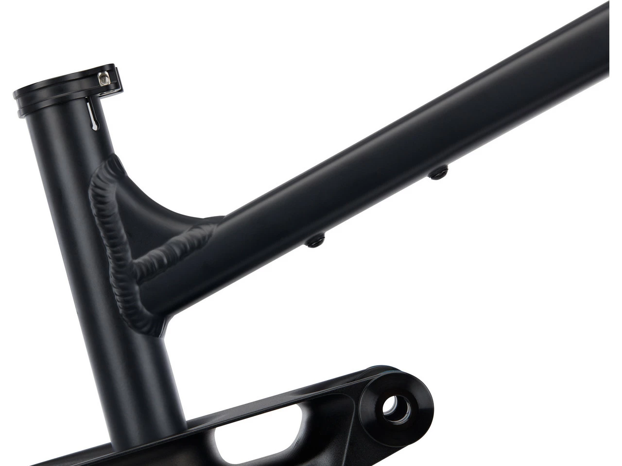 Features:steife Steckachsverbindung verhindert Verdrehen und ist extrem stabilüberarbeitetes Sitzrohr aus einem einzigen hydrogeformten Rohr mit weniger Schweißnähten, dadurch erhöhte Stabilität und reduziertes Gewichtoptimierte, unten zweiteilige Dämpferaufnahme für Dämpferfreiheit und verbesserten KraftflussInnenlagerdesign ermöglicht bessere Dämpferfreiheit bei den Größen S und M sowie höhere Bodenfreiheit bei den Größen L und XLRockerdesign und -verbindung verbessert mit Lager im Rocker statt im Rahmenaußen verlegte Züge zur einfachen Wartung ohne Scheuern oder Klapperninterne Kabelführung für Sattelstütze im Sitzrohr möglichwartungsarm dank komplett abgedichteter Drehpunktedank austauschbarer Bremsaufnahme mit Scheibenbremsadapter für 180 mm auch Montage einer 180-mm-Bremsscheibe möglichAnpassung der Kettenstrebenlänge mit Inserts für Ausfallende möglichschmutzunempfindliches Rahmendesignzwei Gewinde am Oberrohr zur Befestigung von Zubehörtaschen1 Flaschenhalteraufnahme am Unterrohrmaximale Einstecktiefe für Sattelstützen 200 mm (S), 225 mm (M), 250 mm (L), 275 mm (XL)Boost-Kettenlinieantriebsneutrale Federung auch bei Zwischensprintsfeinfühlige, geschmeidige Federung durch hohes Übersetzungsverhältnis zu Beginn des Federwegs und Einsatz von Industrielagerngleichmäßig abnehmendes Übersetzungsverhältnis mit 20 % Progression am Ende des FederwegsGeometrie:(basierend auf einer Gabeleinbaulänge von 570 mm (S) / 580 mm (M, L, XL))