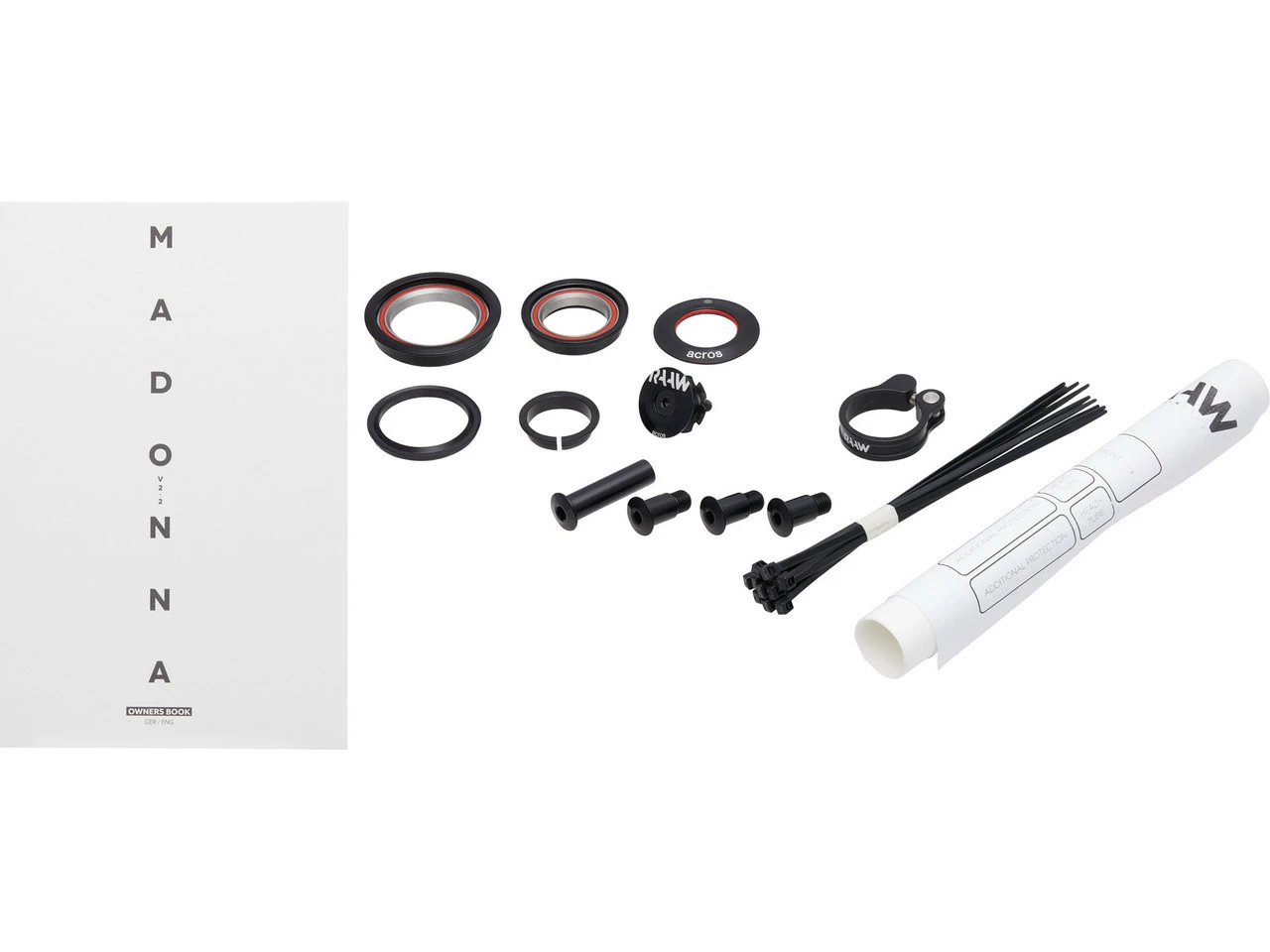 Der RAAW Mountain Bikes Madonna V2.2 Rahmen glänzt mit durchdachten Details, die den Fokus auf Robustheit und Langlebigkeit für den Enduro-Einsatz legen. Mitgeliefert wird auch direkt ein passender Acros Steuersatz. Im Vergleich zum Vorgänger wurden vor allem das Sitzrohr und damit zusammenhängende Schnittstellen wie Tretlager, Hinterbaugelenke und Dämpferaufnahme überarbeitet. RAAW haben außerdem ein eigenes Steckachssystem entwickelt, das die Steifigkeit erhöht und das Lockern der Achse während der Fahrt verhindert. Vom Vorgänger übernommen wurden bewährte Eigenschaften, die den Charakter des Bikes ausmachen. Eine Besonderheit ist die Variation von Dämpfer und Rocker: Die 60-mm-Variante (Größen S, M, L) für 60 mm Dämpferhub ist mit dem daraus resultierenden höheren Übersetzungsverhältnis optimal für ein leichteres Fahrergewicht bis 90 kg. Die 65-mm-Variante (Größen L, XL) für 65 mm Dämpferhub eignet sich hingegen am besten für Fahrer ab 90 kg. So haben alle denselben Fahrspaß. Alle Drehpunkte und Endkappen sind abgedichtet, die Dämpferaufnahme ist ebenfalls mit Kugellagern ausgestattet. Die Bremsaufnahme ist ein eigenes Bauteil und erspart Dir zusätzliche Adapter. Mit Inserts kannst Du außerdem die Kettenstrebenlänge nach Deinen Wünschen anpassen. Damit die Wartung leichter fällt, werden alle Züge außen verlegt. Mit dem Madonna V2.2 kommst Du nicht nur schwungvoll den Berg herunter, auch bergauf zeigt es gute Klettereigenschaften. Die ausbalancierte Geometrie ermöglicht eine zentrale Sitzposition kombiniert mit Laufruhe und Berechenbarkeit. Und auch an Deine Ausrüstung ist gedacht: Am Oberrohr befinden sich zwei Gewinde zur Befestigung von Zubehörtaschen, damit Du auch ohne Rucksack das Wichtigste immer direkt dabei hast.