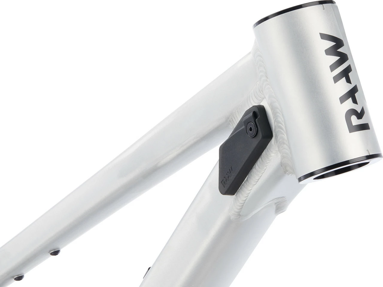 Wie üblich bei RAAW zeugen durchdachte Elemente von hoher Detailverliebtheit. Das Rahmendesign zeigt Matsch die kalte Schulter und ist leicht zu reinigen. Komplett außenverlegte Züge vereinfachen die Wartung und erlauben schnelle Reparaturen. Schützende Gummielemente an Unterrohr und Kettenstrebe sowie innen an der rechten Sitzstrebe tun ihren Job ebenso wie die extralangen Anschlagpuffer, welche verschiedene Gabel-Offsets erlauben und zugleich als Kabelführung dienen. Die zwei Gewinde unten am Oberrohr verwendest Du bei Bedarf, um eine kleine Werkzeugtasche anzubringen. Die Scheibenbremsaufnahme ist ein eigenes Bauteil und standardmäßig für 203-mm-Bremsscheiben ausgelegt. Der spezielle Steuersatz und Hardware zur Dämpfermontage sind bereits im Lieferumfang enthalten.