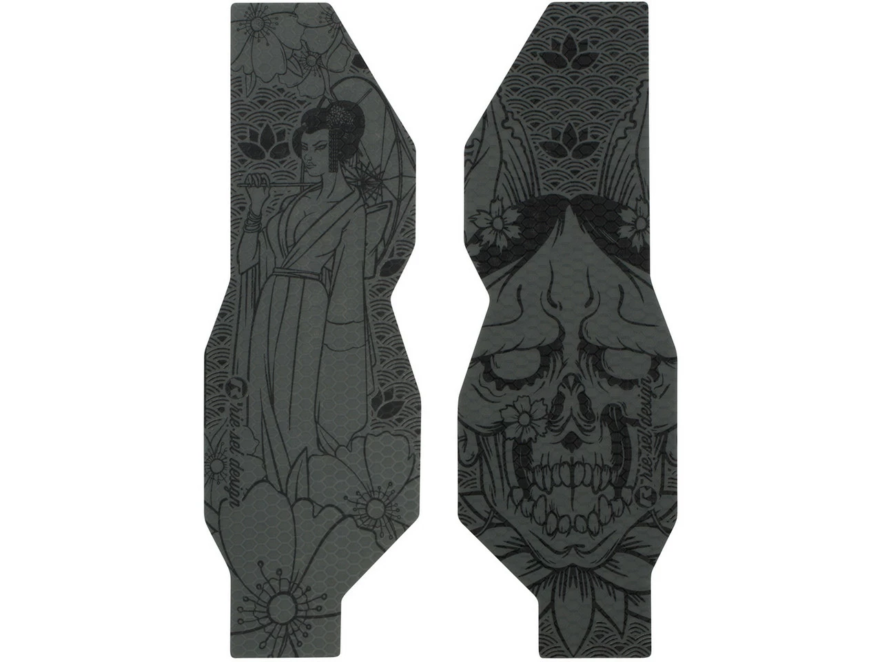 Features:zwei Shapes von je 82 x 247 mmaus unverwüstlichem Honeycomb MaterialselbstklebendFarben verblassen nichtnur 23 g GesamtgewichtHerstellernummern:dazzl:T3-FK004camo:T3-FK003maori:T3-FK005japan:T3-FK006clear:T3-FK002stickerbomb:T3-FK001Lieferumfang:1 x Gabelschutz Set rie:sel fork:TAPE 3000